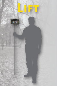 Then, go to the survey mark, lift TRIUMPH-VS to near vertical (better than 5 degrees). Survey will start automatically and sensors continuously compensate for leveling offsets. Audio tones keep you informed of the survey progress. You can use a headset if you are in noisy area. You can also take notes by talking to TRIUMPH-VS.